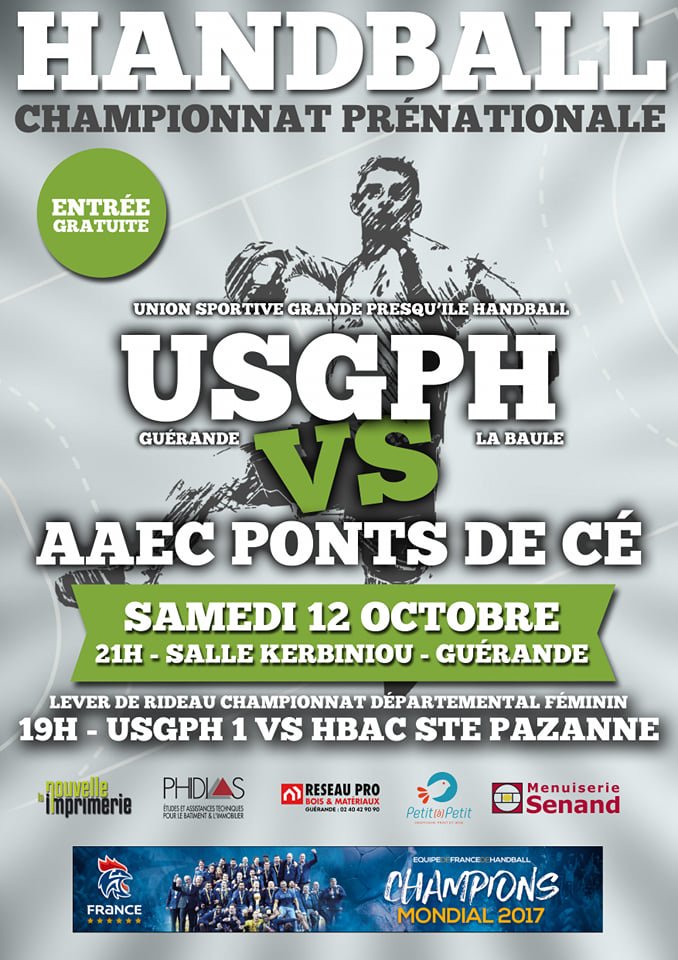 @villedeguerandeVille de Guérande@villedeguerande#handball #guerande samedi 12 octobre, les seniors masculins 1 de l'USGPH reçoivent à 21h AAEC, Pont de Cé au complexe sportif de Kerbiniou. https://t.co/miwwM3qxQOAfficher la suite