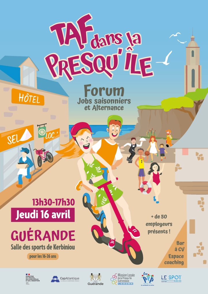 Forum « Taf dans la Presqu’île » : jobs saisonniers et alternance pour les 16-26 ans. Plus de 50 employeurs, bar à CV et coaching, le 16 avril à Guérande.